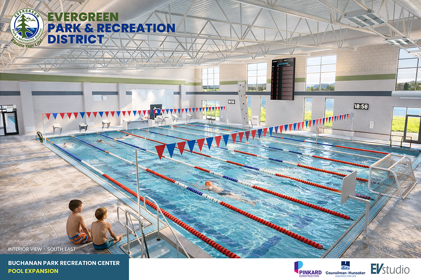 Returning to the same facility Pinkard first built back in 2003, the new $11 M addition for Evergreen Park and Recreation District (EPRD) will add a new multi-use indoor pool that connects to the existing natatorium.