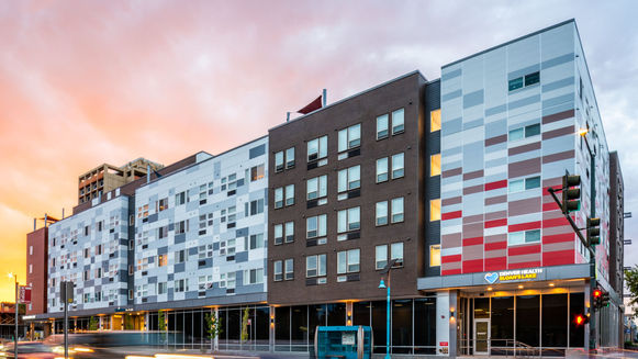 Denver Housing Authority's new ground-up mixed-use senior housing development on approximately one acre of land along W. Colfax between Perry St. and N. Quitman St. included 176 units of senior housing, a health clinic, and an adult day center.